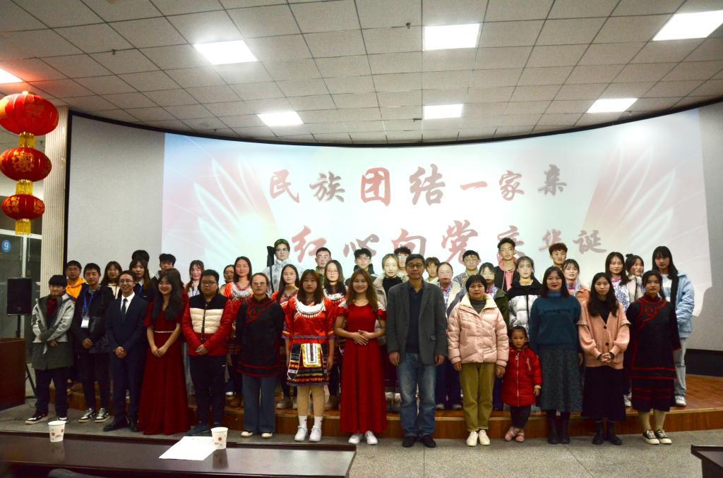 11月26日晚,威廉体育williamhill“民族团结晚会”在明理楼C301举行。公司党总支书记徐成发、副书记周敏,相关专业教师、辅导员及少数民族员工代表参加晚会。
