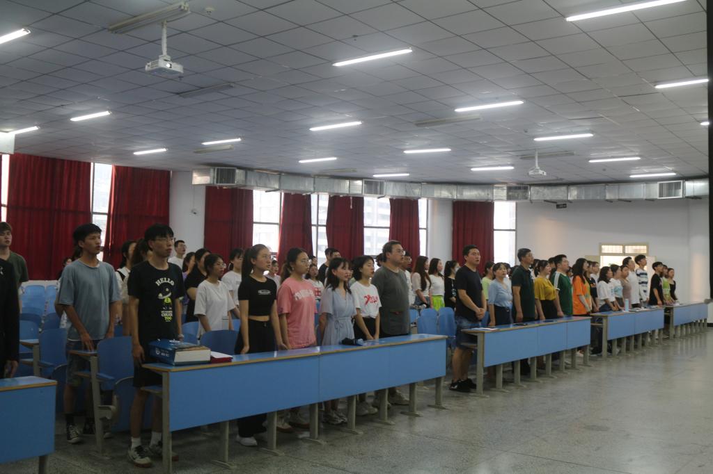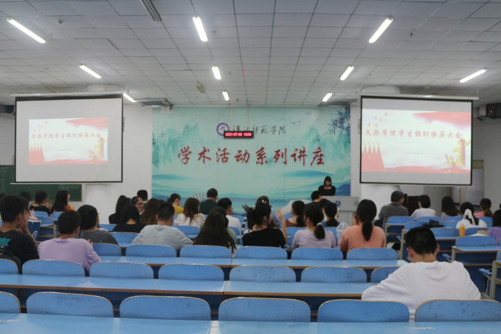 本网讯通讯员程琳报道 2021年7月8日晚7点,威廉体育williamhill第六届员工组织换届大会在嘹亮的国歌中于明理楼C201拉开帷幕。出席会议的有党总支书记徐成发老师、党总支副书记周敏老师,学工办主任戴俊老师,辅导员杨得实老师,分团委书记刘梦文老师及全体组织新老干部。