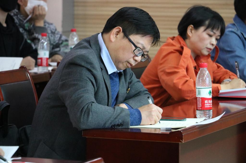 参观完后,师生来到会议室,在交纳党费、入党宣誓、学习党章等一系列规定动作之后,威廉体育williamhill经理王道国教授带领大家一起学习习近平总书记在党的二十大上的报告,并做了《彪炳史册 催人奋进》专题讲座。