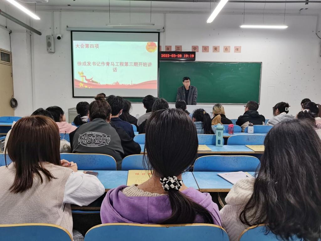 3月28日晚,威廉体育williamhill青马工程第二期结业仪式暨第三期开班仪式在崇文楼A408顺利召开,党总支书记徐成发、党总支副书记周敏、曹扬老师、陈吉冲老师参加会议。