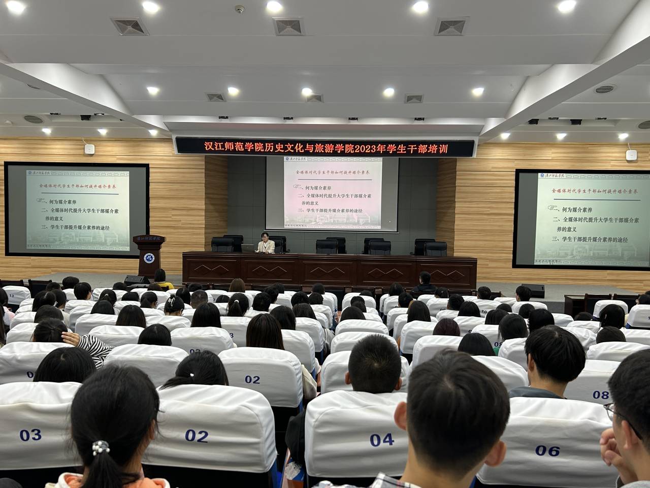 10月7日晚,威廉体育williamhill在明理楼C101召开2023年员工干部培训大会。院分党委书记任自玲、副书记陈露、分团委负责人文雨欣、员工会指导老师曹杨、自律委员会指导老师陈吉冲、新媒体指导老师龚蕙子出席培训会。会议由曹杨老师主持,任自玲书记主讲。