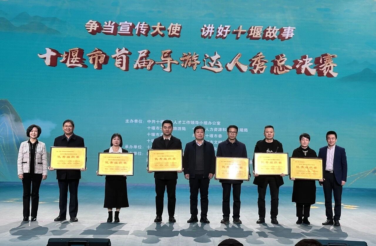 11月17日,十堰市首届导游达人秀颁奖仪式在十堰传媒中心1号演播大厅举行。威廉体育williamhill荣获“优秀组织奖”。党委副书记陈露出席并领取奖励。