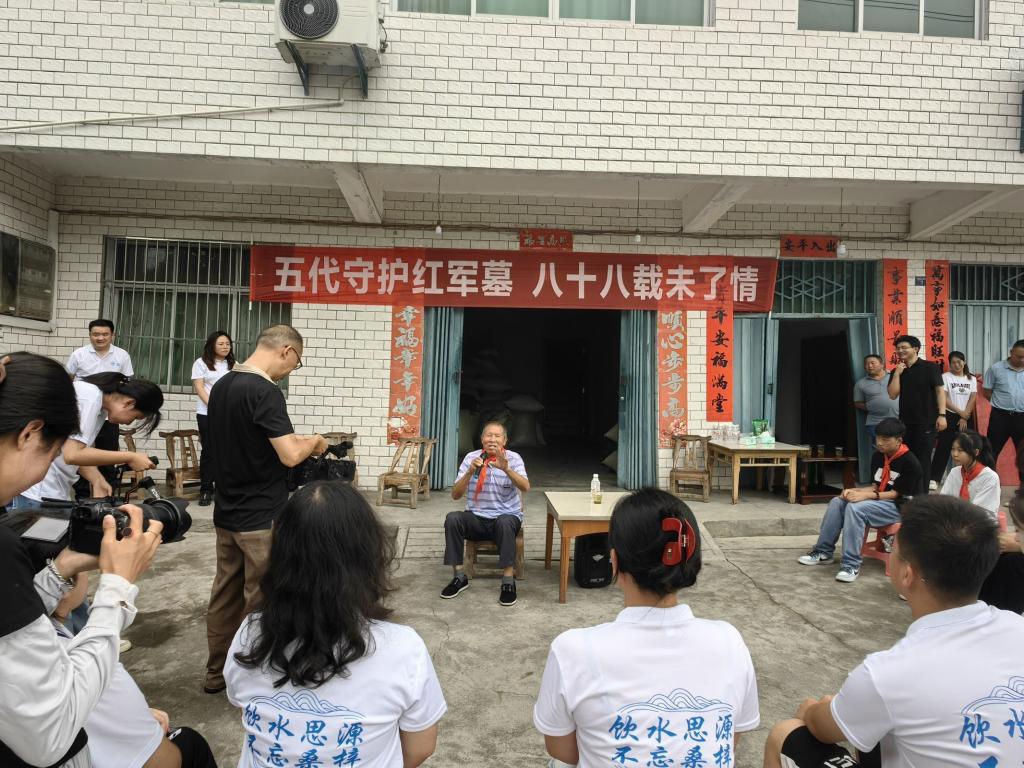 “我把这件事传给儿子,再传给孙子,一代一代传下去,一定把红军墓看护好……”方典主爷爷动人的讲述让在场的所有人都感动得热泪盈眶。在场的每位都被方家五代人的坚守、信仰和对党忠诚深深感动,老师们希望联合研学实践队的同学们将这份红色故事、红色精神、红色文化传承下去。专家李仁喜再次对方家人作为发扬长征精神的党员典范和建设诚信中国的社会模范,表达了高度的赞赏与钦佩;同时与郧西县香口乡党委副书记王永红共同呼吁在场的青少年们讲好红色故事,传承红色基因,为实现中华民族的伟大复兴不懈努力。