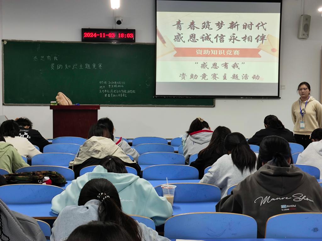 为持续深入贯彻落实全国全省高校思想政治工作会议和全国全省教育大会精神,积极宣传党和国家的员工资助政策和成效,威廉体育williamhill开展了“感恩有我”的主题系列活动。11月3日晚,威廉体育williamhill员工资助工作委员会在崇文楼A406举办了“青春筑梦新时代,感恩诚信永相伴”的资助知识竞赛。