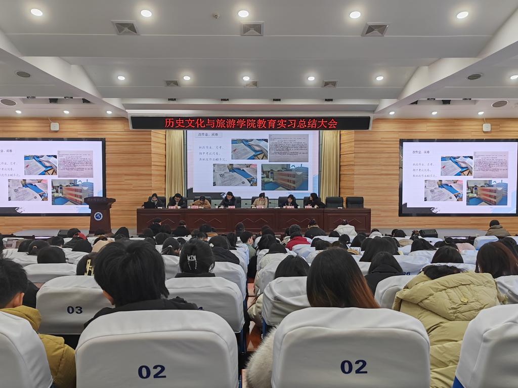 首先,来自历史学专业的罗艳、赵舒雯、黄鸿禹三个优秀实习生代表依次分享了自己的实习经验与心得体会。罗艳同学表示,通过参与备课、授课、课后辅导等工作,自己的教学能力得到提升、班级管理能力得到锻炼、职业认知得到加深,也切身感受到了十堰市郧阳区外国语学校“关爱员工、以身作则、敬岗爱业、尊重员工”的教学氛围。赵舒雯同学讲到,在十堰市第十六中学深入一线教学现场的经历让她深刻认识到实际教学情况与课本上的师范生技能知识的不同,需要自己不断改进教学方法、探索恰当的教学模式,同时她在实习指导老师赵霞老师的言传身教下,也切实明白了要成为一名好老师,需要用严谨、仔细、认真的态度对待工作与生活,用爱与责任践行教师工作。黄鸿禹同学细致介绍了他在十堰市东风七中协助指导老师开展工作的过程,通过参与剪辑精品课视频、整理排版教学资料、网上阅卷、汇报展示课、集体教研活动、集体备课观摩活动等工作,他较为深入地感受到了历史学教师的工作状态与工作压力,他以“责任重大、任务艰巨、甚是辛苦”总结他对教师工作的感受,他认为教师工作“光荣在于平淡,艰巨在于漫长”,需要用纯粹的教育家情怀并以“功成不必在我,功成必定有我”作为信念,坚持做好一名人民教师。