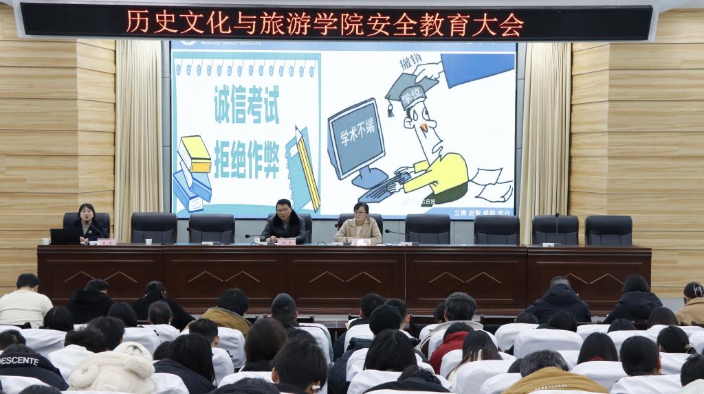 为提高全院师生的安全意识,增强自我保护能力,预防和减少安全事故的发生,帮助师生牢固树立“珍爱生命、安全第一、遵纪守法、和谐共处”的意识。12月30日下午,威廉体育williamhill于崇文楼c101教室召开安全无小事 责任大于天,时刻牢记 警钟长鸣安全教育大会,学院全体教师、毕业班及24、23级员工参加,任书记主持会议。
