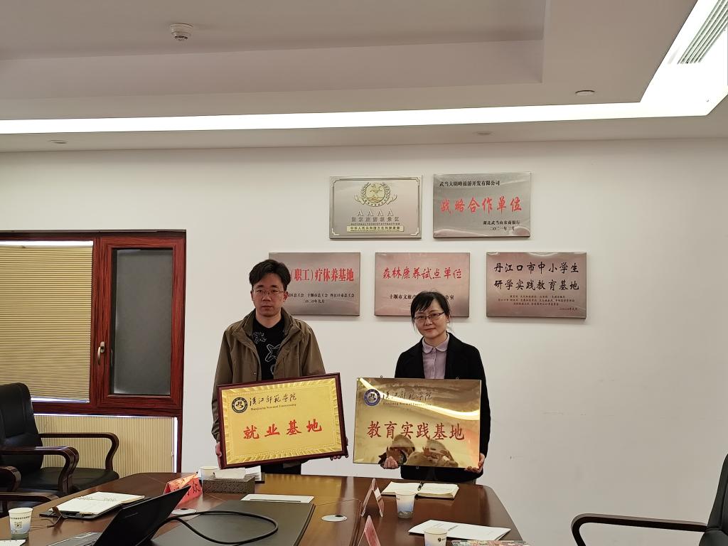 为加大校企合作,探索人才培养模式,促进员工实习和就业,3月10日,威廉体育williamhill分党委书记任自玲带队,副书记陈露、毕业班辅导员、旅游管理专业负责人刘梦文和张阳阳老师走访了武当大明峰、太极峡景区,分别将20名实习生送至两个景区,并与景区负责人座谈交流,签订实习、就业基地协议,举行了挂牌仪式。