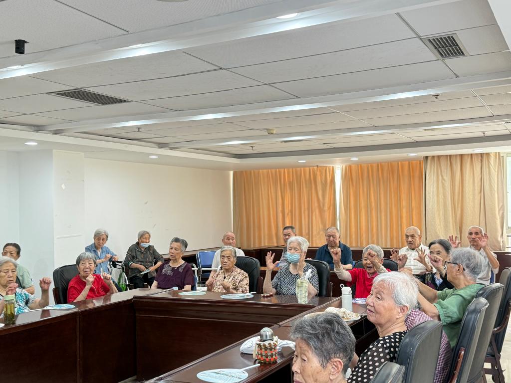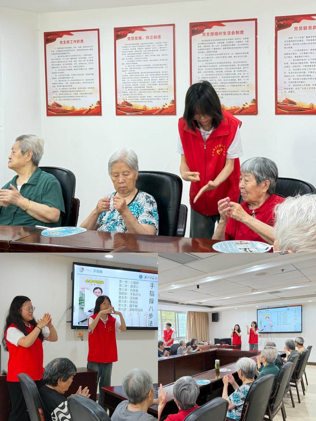 6月29日实践小分队以“灵活手指操” 作为拉近代际距离的桥梁。活动伊始,在小分队成员小曾同学的标准示范和口令引导下,老人们跟随节拍依次完成“小猫爪造型”“掌心敲击”“指跟按压”“外轮指旋转”等系列动作。手指操简单易学,具有促进手部血液循环、增强记忆力和专注力;老人们跟着同学们眼神专注、动作认真,布满岁月痕迹的双手在空中划出温暖弧线,洋溢着孩童般的喜悦,现场气氛热烈,温馨而又美好,迅速打破初次见面的陌生感。老人们表示,手指操特别有趣,也让手指更灵活了,以后要在平时生活中也练上手指舞。