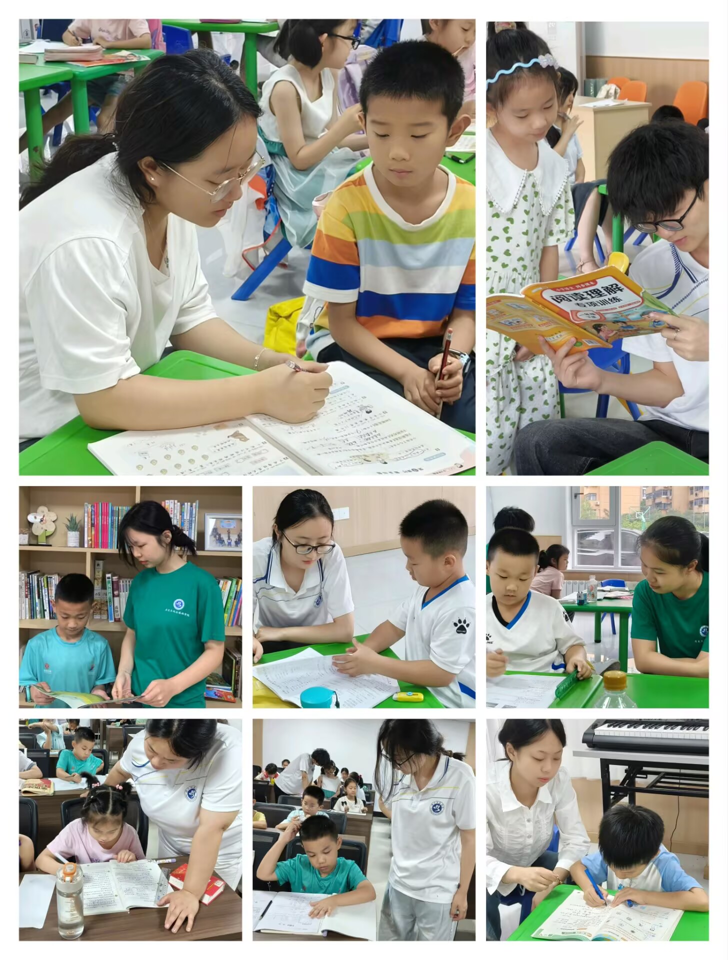 托管教室充满了浓厚的学习氛围,团队成员耐心辅导小朋友们的暑假作业,针对他们在学习中遇到的难题,进行一对一的讲解,用通俗易懂的语言和生动形象的例子,帮助孩子们理解知识点,攻克学习难关。