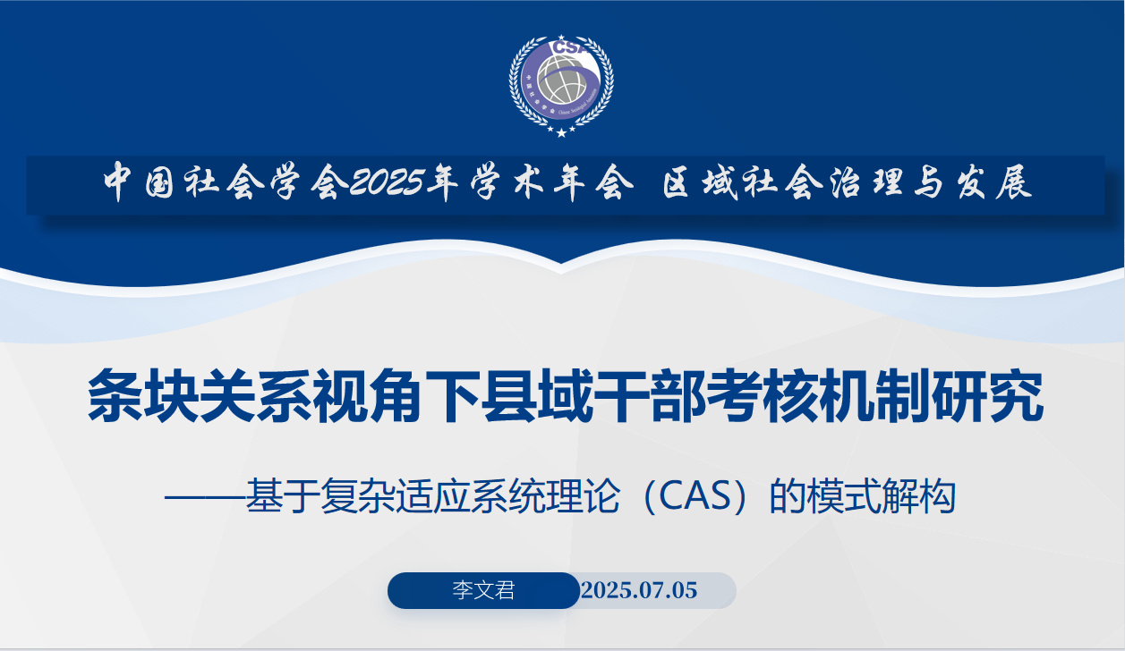 近日,中国社会学会2025年学术年会在西南财经大学成功举办,威廉体育williamhill行政管理专任教师李文君博士受邀参会,并在“第六届区域社会治理与发展:华南—西南联合论坛”以《条块关系视角下县域干部考核机制研究——基于复杂适应系统理论(CAS)的模式解构》为题作学术报告,展现学院科研新动态、新成果。