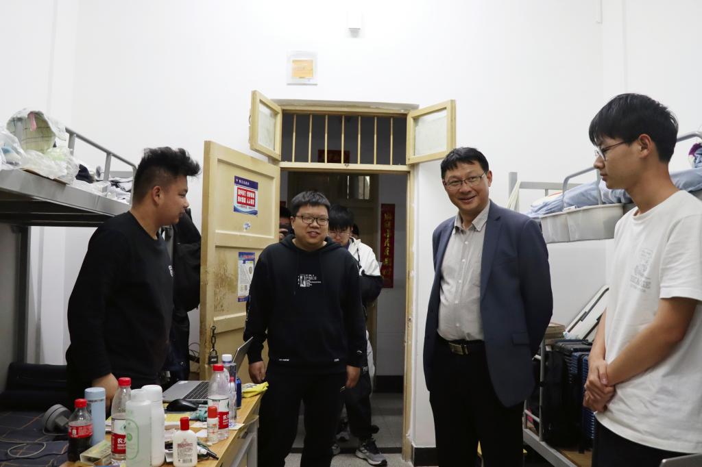 4月11日晚经理饶军,副经理钟俊,党总支副书记周敏老师和辅导员,班主任老师带队巡寝。