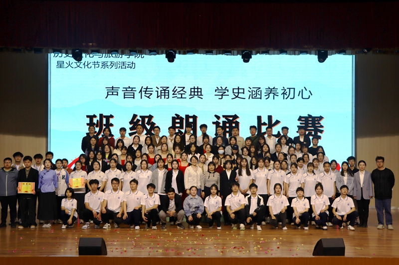朗诵比赛在热烈的氛围中拉开序幕。随后,进入决赛的8个班级依次上场,每位选手都整齐着装、精神饱满。朗诵形式丰富多样,配乐、歌舞、书法等形式创意十足。《青春中国》《我骄傲,我是中国人》《红色信仰》《祖国啊,我亲爱的祖国》……一首首充满爱国情怀的诗歌从同学们口中郎朗诵来,时而深沉、时而高亢,赢得现场阵阵掌声。最终,历史学2101班二队获得本次朗诵大赛一等奖。何春晖作为指导老师对大赛作了点评。
