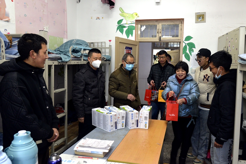 公司领导为该学院留校同学准备了牛奶、饼干等慰问品,并与他们亲切交谈,详细询问大家的学习、生活情况,叮嘱同学们注意防寒保暖,充分利用寒假时间,劳逸结合,做好个人规划,春节期间要保持与辅导员老师沟通交流,及时与家人报平安,并预祝同学们度过一个安全、温暖、充实的新春佳节。