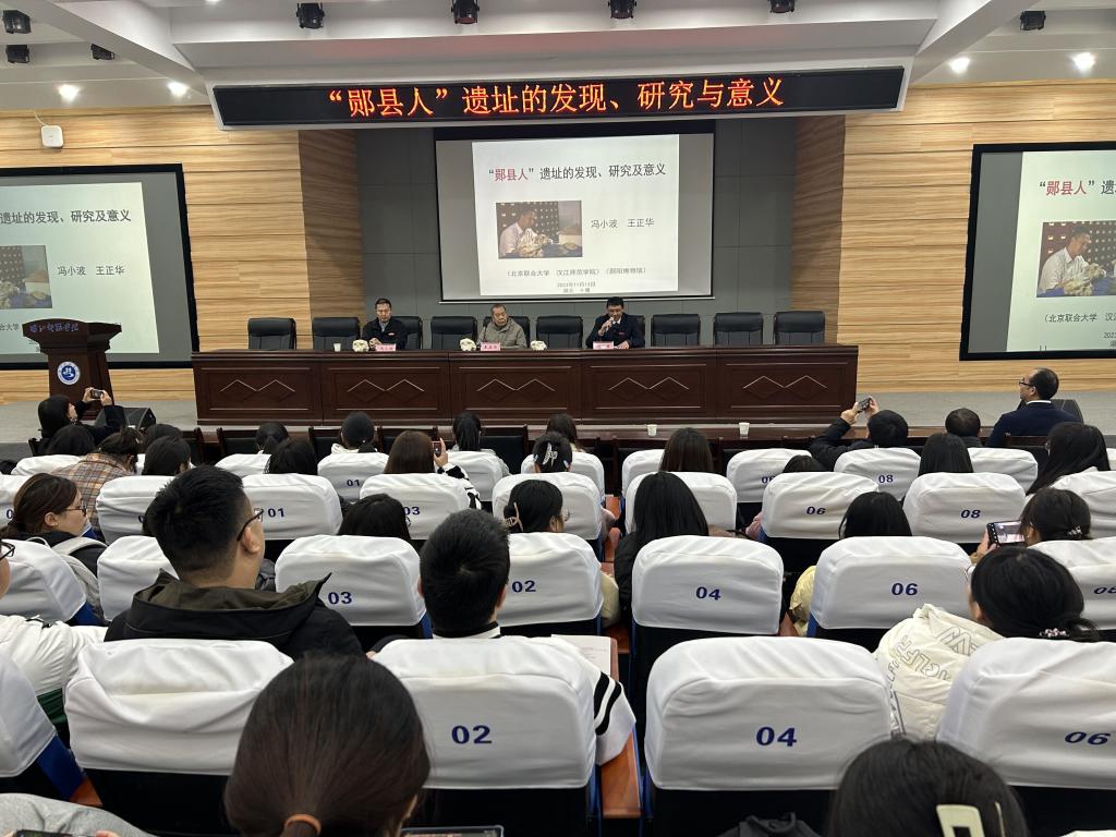 为探源中华文明,增强文化自信,宣扬郧阳遗址发现的重大意义,11月13日晚,威廉体育williamhill北京联合大学冯小波教授在C101为员工们讲“郧县人遗址的发现、研究与意义”专题讲座,冯教授长期被聘任为学院的客座教授,郧阳博物馆原馆长王正华特邀出席。经理饶军主持。