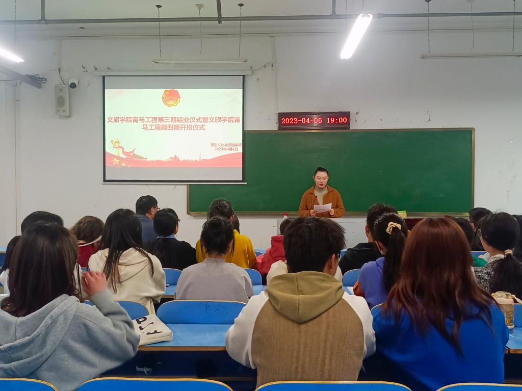 周书记为第三期青马工程结业暨第四期青马工程开班讲话。她对学院青马班学员提出了四点要求:一是要坚定理想信念,做有信仰的时代青年。二是要在奋斗和奉献中根植家国情怀,做青春奉献、乐于助人,争当志愿服务者的青马学员。三是要有扎实学识,学好专业知识,做专业能力突出,学习能力强的青马学员。四是要争做先锋模范,做一名知行合一、以理论和实践相结合的青马学员。她希望全体青马学员能够谨记“立德启智,修能笃行”的校训,在砥砺奋进中不负韶华,不愧青春,不负使命。